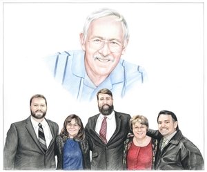 Dad's champions!by Julie Belcher (Russellville, KY, US)The first couple of drawings needed some changes but finally it came out perfect. This was taken at the funeral home when my father died, this is why he is drawn lighter than everyone else. The photo we used had everyone in black. So I asked them to change the color of the women's dresses. They also changed the color of everyones eyes because it was difficult to see in the photo. Everything turned out perfect. It was amazing. I will always recommend their service.