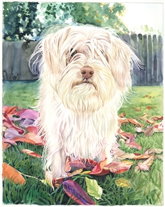 We chose a water color painting for our next dog, and it captured her perfectly! The artist did a great job portraying the nuances of her face, her soft, wavy hair, and her white/cream coloring.