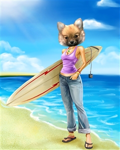 Foxy the Surfer Girlby Kim Voorhees (Piscataway, NJ, US)I have a shore house and I had a caricature done of my 3 little dogs. I then got a 4th little one...and I had to have her on the wall with the others...so I had MyDaVinci do a new one of Foxy. We put her up this past weekend next to the other one we already have. Love MyDaVinci. I have had pencil sketches also done by them. The turn around, quality and most of all the art work talent is top notch. Thank you.