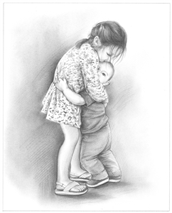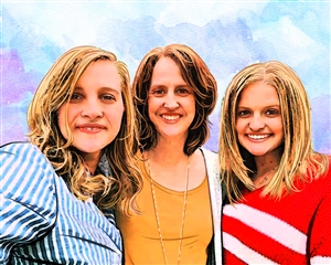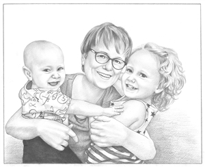 Kim and her daughtersby Russell Krivak (Columbia Station, OH, US)All three of the girls loved the rendering of their picture. Kay was especially impressed with the job that your artist did on her and the detail of capturing her baby hairs still on her head. Very nice work.