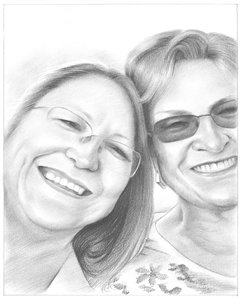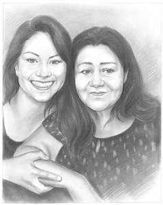 Mother and daughter drawing by Connie Ulicne (Taylor, MI, US)I know the photo was not the best to work with. The drawing turned out beautiful! Summer did a wonderful job. She was very prompt with responses. Great customer service. This photo is of my mother-in-law's sister and niece, which both passed away. Thank you for the beautiful memory she will have a down from your drawing.