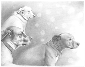 Dogs in Heavenby William McVay (Midland, GA, US)My three dogs passed away over a nine month period. We had one poor image with all three of them together, littered with furniture, plants and my hairy legs. The myDaVinci artist removed the trash, and gave me the exact impression I was looking for. It took my breath away when I saw the proof. It is truly a gift that my family will treasure forever.