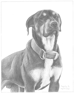 Patchesby Catherine Hamill (Rahway, NJ, US)I was very happy with the sketch. I am glad I got a chance to review it before you sent it out. The ball was not in the picture at first. I wanted it in the picture because Patches always plays with it not only with us but also with visitors.