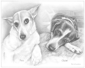 Memory of my grand fur babies. by Debbie Tunney (Belle Vernon, PA, US)This is my second order to My Davinci. The first was my son’s dog. It was absolutely beautiful so that’s why I decided to get my daughter one when her two dogs passed away ten days of each other. Again I was so happy with this one. It showed their character. It is amazing how they captured this. Thank you so much for two beautiful drawings. I will be using them again.