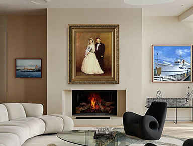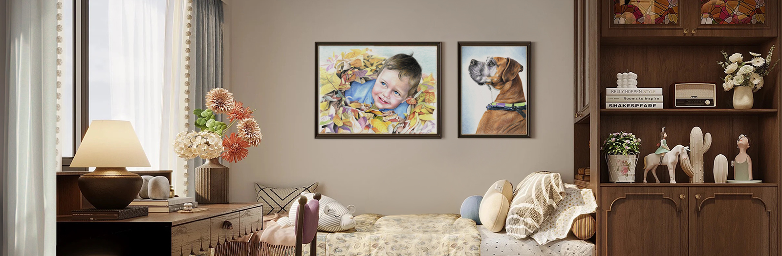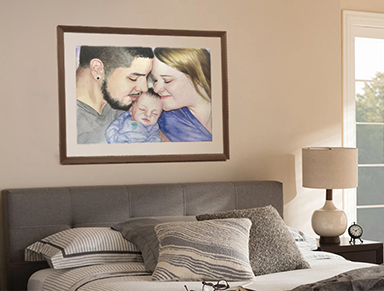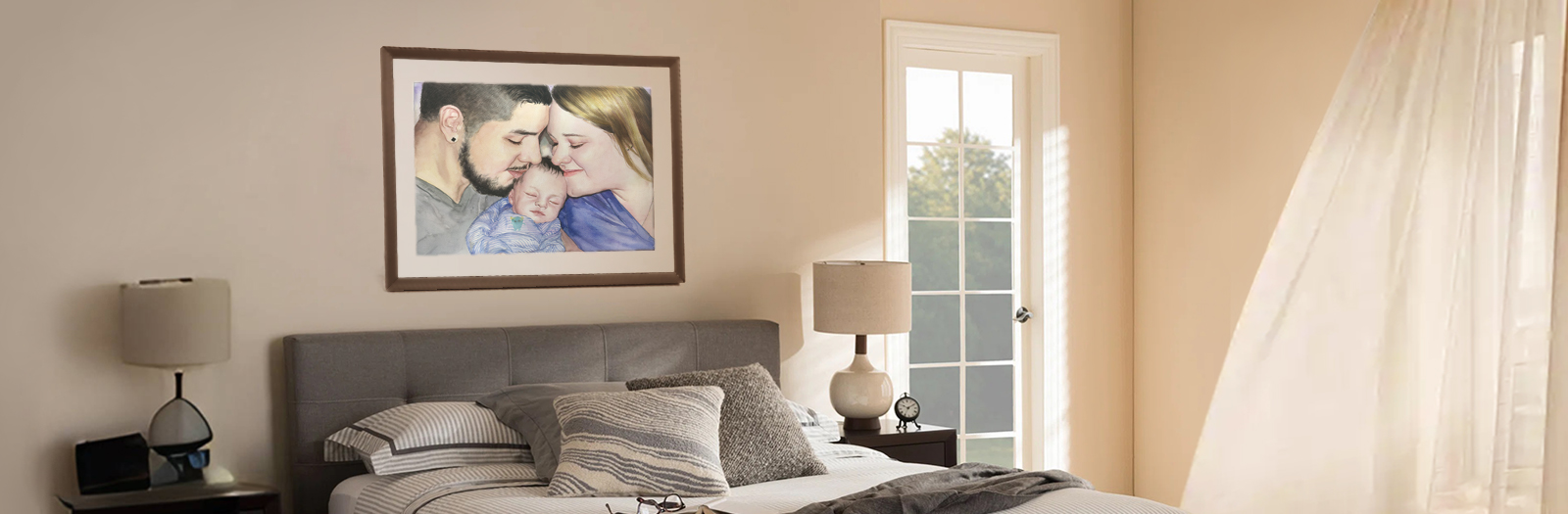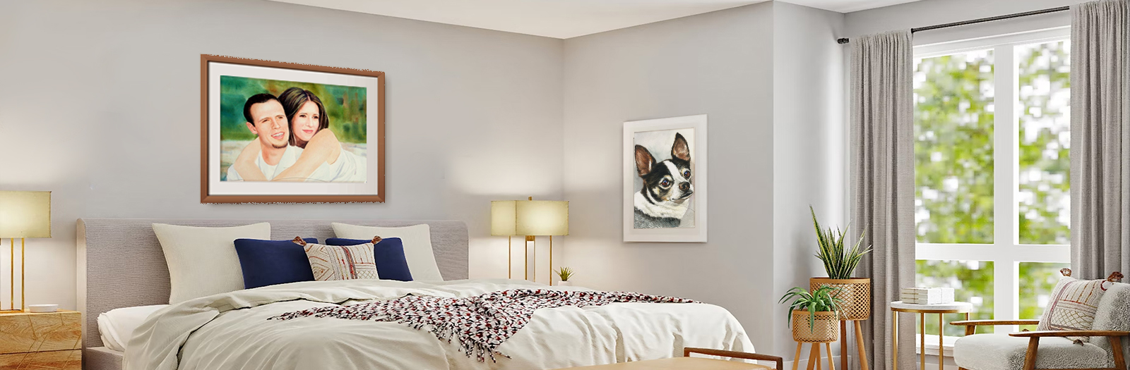 In the quiet sanctuary of the bedroom, a hand-drawn portrait of a loved one hangs above the bed. It's a personal and intimate piece of art, a symbol of the deep connection and love shared between two people. The portrait, created by MyDaVinci, captures the essence of the person, their smile, their eyes, and the unique qualities that make them special. In this bedroom, MyDaVinci's art becomes a source of comfort and inspiration, a reminder that love beyond the ordinary can be found in the simplest of gestures, in the act of preserving a memory forever.